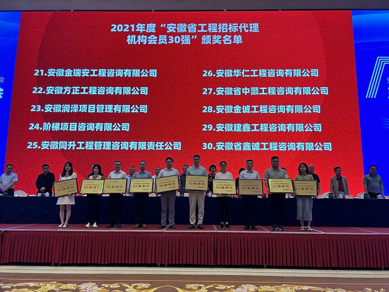 2021年度“安徽省工程招标代理机构会员30强”颁奖名单